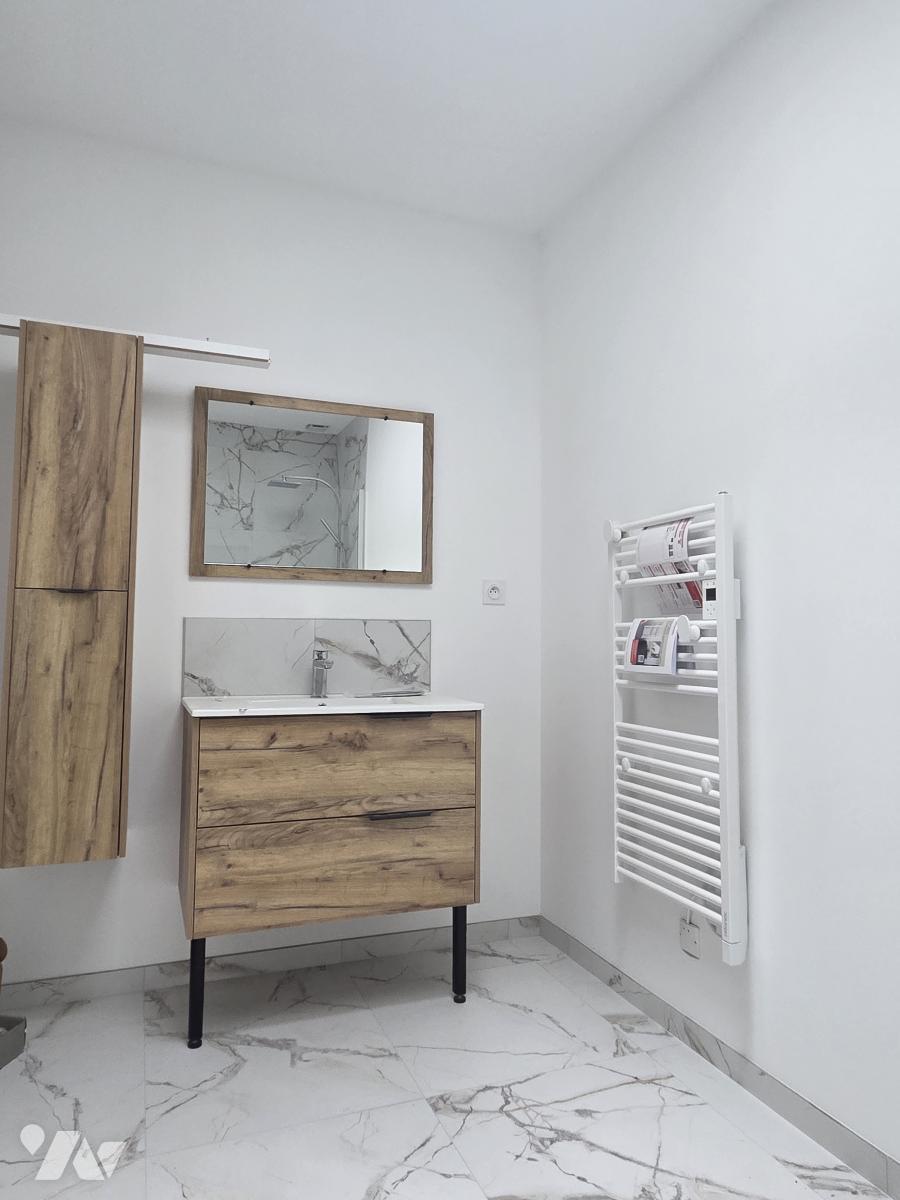 Comprenant un salon-séjour donnant accès à une large terrasse exposée Sud, une cuisine ouverte aménagée et équipée, une buanderie, trois chambres avec placards, une salle d'eau avec douche italienne, WC et dégagement.